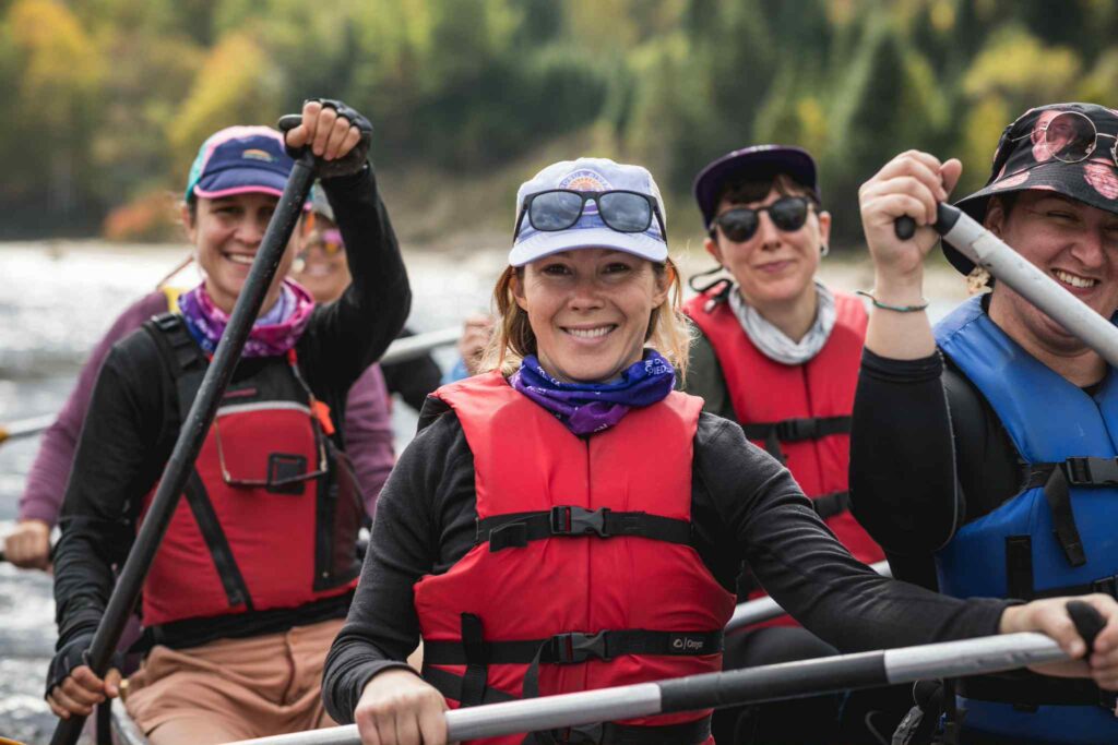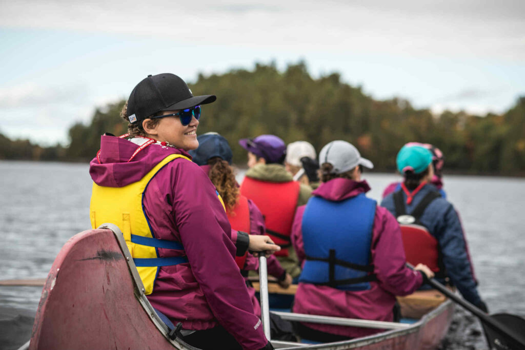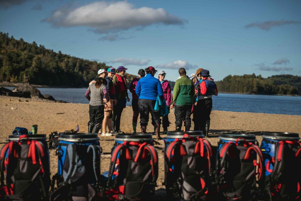 This morning, we woke up to the sound of Three Little Birds on the ukulele and the harmonious voices of Colleen, Myriam, and our facilitators Ève-Marie and Marie-Michelle. You could feel the excitement in the lodge. Breakfast was pancakes, tea, and coffee, and already we were preparing our bags for a day of rabaska-camping. We had two hands (or 10 km) of distance to travel. Would we make it?