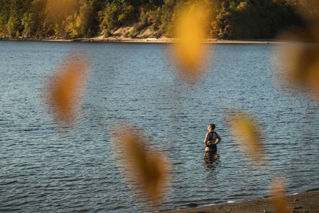 We took some time to set up camp, then gathered on the beach to watch the sunset. Some went swimming; Katherine and Jessica enjoyed the lake, Leah read a book, Jessie and Sophie chatted, while Liz contemplated the view. We immortalized the day with our official group photo, a delicious beet risotto by the fire, and a sharing circle that was sincere and authentic. We felt fulfilled, accomplished, relaxed, and relieved!